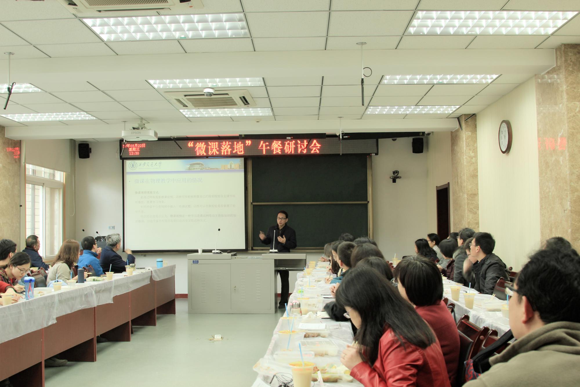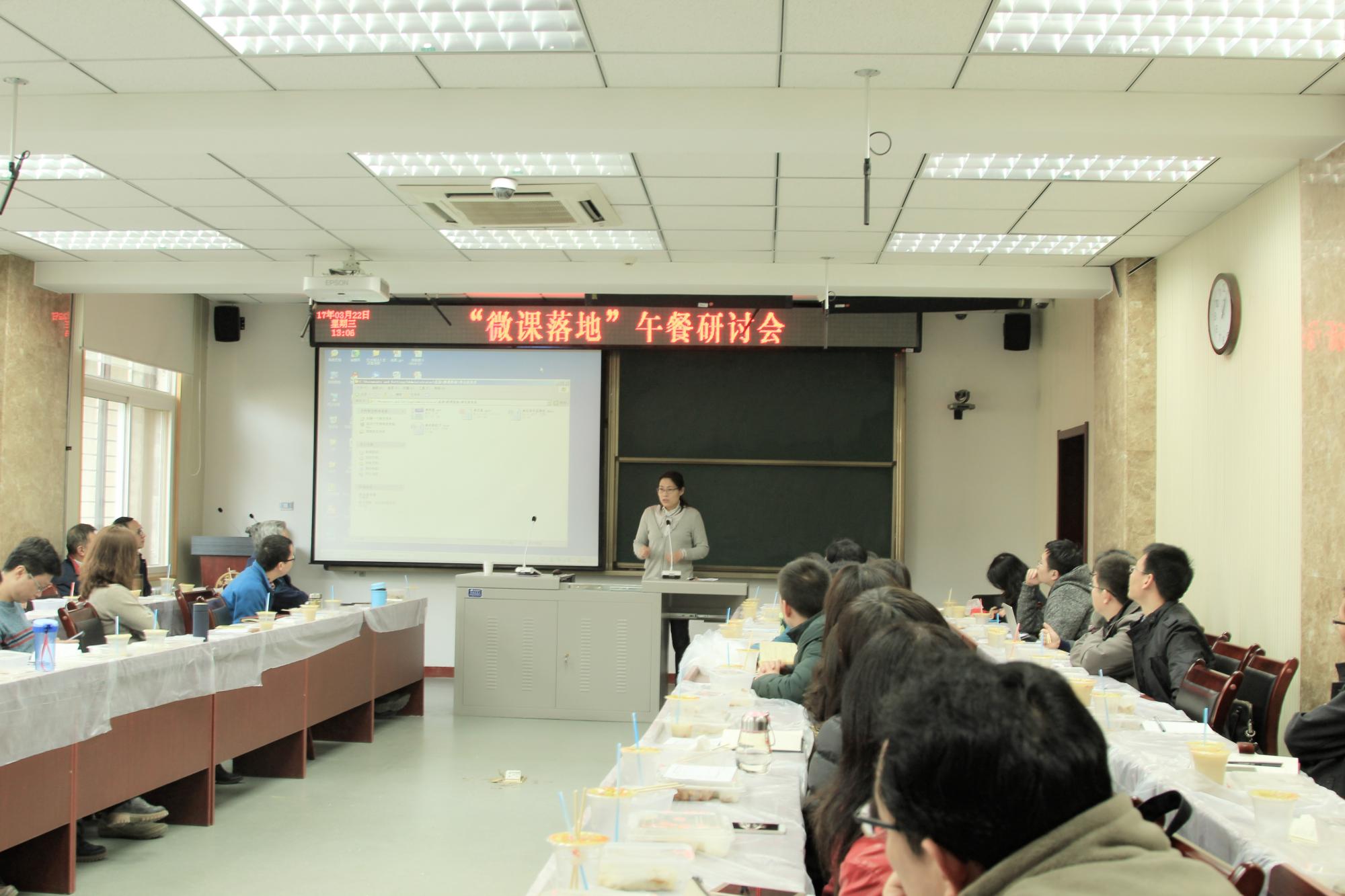 3月22日中午,21365.com举办的“微课落地”午餐研讨会在中一楼2124室举行。本次研讨会由中心专家王汝文教授主持。43位老师到场参加,研讨会气氛轻松融洽。